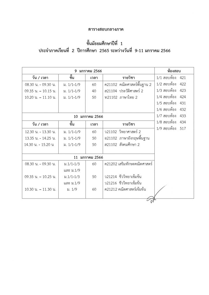 ตารางสอบกลางภาคเรียนที่ 2 ปีการศึกษา 2565