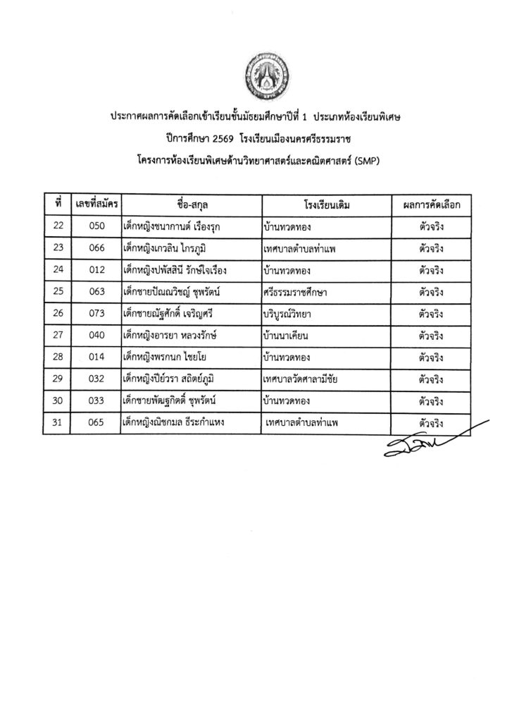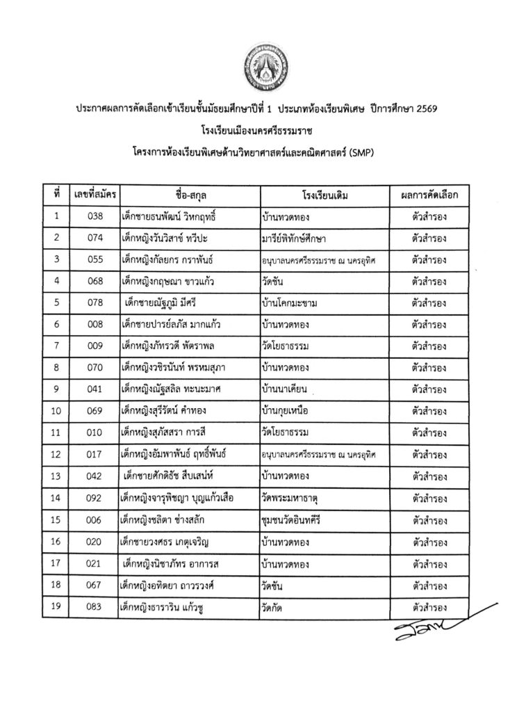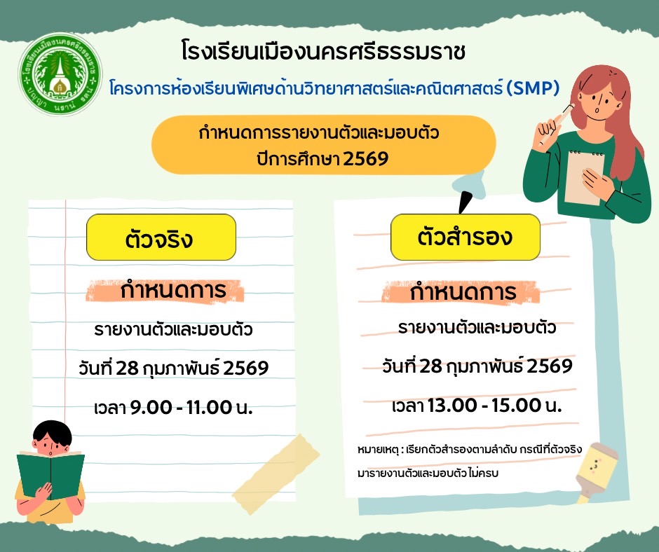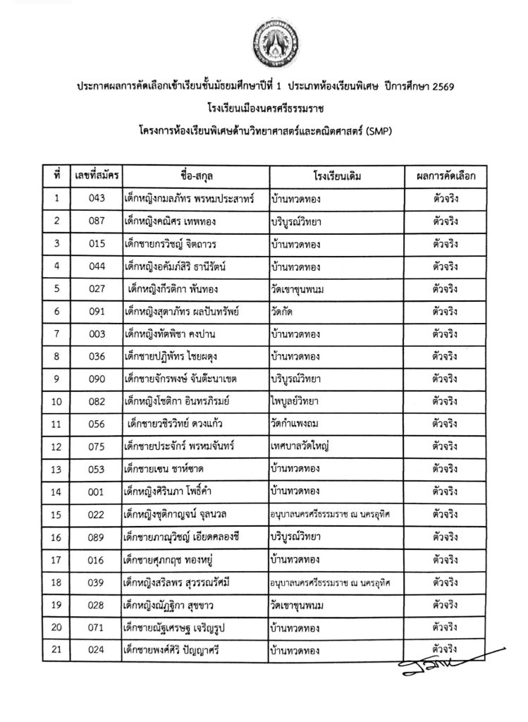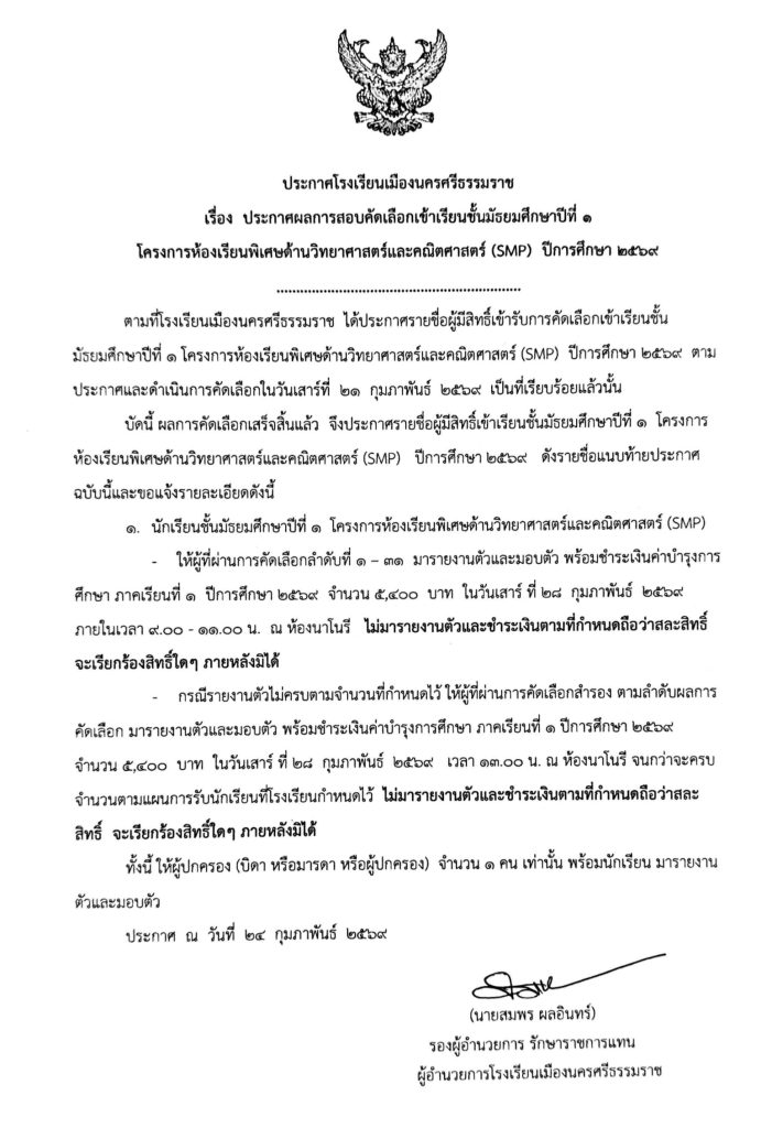 ข่าวรับสมัครนักเรียน ประกาศผลสอบคัดเลือกนักเรียนชั้นมัธยมศึกษาปีที่ 1โครงการห้องเรียนพิเศษ SMP ปีการศึกษา 2569 24/02/202624/02/2026 Admin 0 Comments